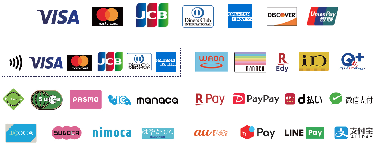 - 現金またはキャッシュレス決済(クレジットカード、電子マネー決済、QRコード決済)をご利用いただけます。